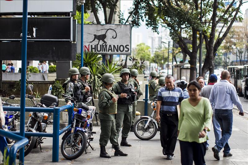 Varios grupos de Policía Nacional, Guardia Nacional (GNB, policía militarizada) y Policía municipal se desplegaron desde la plaza hacia diferentes calles, por las que transitaban grupos de la denominada Guardia del Pueblo (una subdivisión de la GNB destinada a vigilancia ciudadana) en motos, según pudo constatar Efe.
