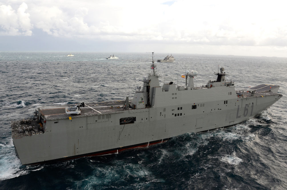 España también envía a las maniobras a las fragatas ‘Santa María’ –actualmente integrada en la segunda agrupación naval permanente de la OTAN– y la ‘Blas de Lezo’, un helicóptero embarcado, así como un avión de patrulla marítimo P-3M para el ejercicio.