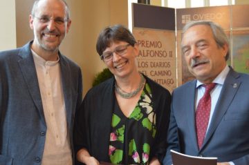 Decía Machado, prosiguió López, «que ‘se hace camino al andar’ y el de hoy es un paso más para acercar y difundir la realidad y la experiencia inigualable que representa el Camino de Santiago. Quiero desde aquí agradecer y reconocer la labor de la Fundación Valdés Salas, que a través de ésta y otras actividades, se preocupa de tener presente y recordarnos a todos el valor incalculable de este patrimonio. Al igual que lo hacen las Asociaciones de Amigos de la Ruta del Norte, hoy representadas aquí por su presidente. Estoy seguro de que si seguimos trabajando juntos lograremos avanzar y ‘hacer camino’. Como Alcalde siempre es un placer participar de cualquier iniciativa en cuyo ADN esté la cultura. Hoy entregamos un galardón literario internacional que además de rezumar europeísmo, cosa que me congratula especialmente, tiene su corazón en Oviedo porque la figura de Alfonso II está en la génesis de nuestra ciudad. Él fue el primer peregrino, un legado que ha pervivido junto a otras joyas únicas como el Prerrománico».
