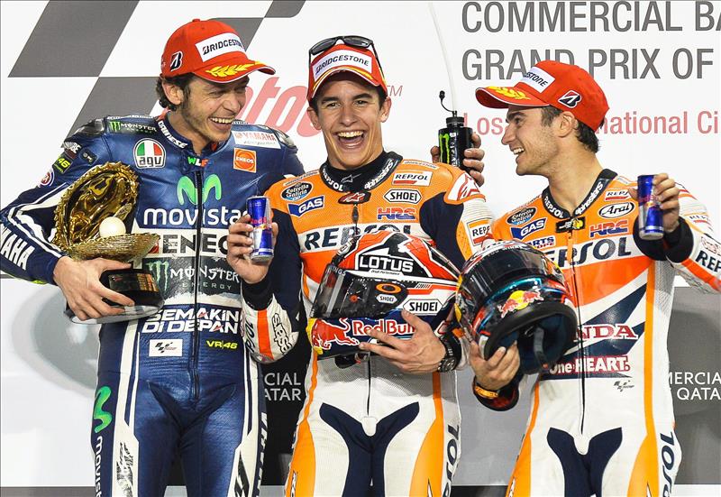 6077757wLosail (Catar), 23 mar (EFE).- Los españoles Marc Márquez (Repsol Honda RC 213 V) y Esteve «Tito» Rabat (Kalex) y el australiano Jack Miller (KTM) han sido los primeros vencedores de la temporada al imponerse en sus respectivas categorías del Gran Premio de Catar, prueba inaugural de un campeonato que va camino de ser uno de los más igualados de los últimos años.
