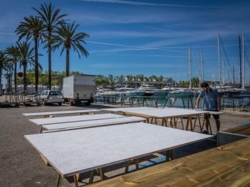 Más de 200 personas trabajan en el montaje del escenario del 35 Palma International Boat Show