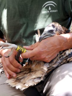 Desde 2000, año en el que comenzaron los trabajos de seguimiento del alimoche en Andalucía, la Consejería de Medio Ambiente y Ordenación del Territorio ha marcado a un total de 212 pollos.