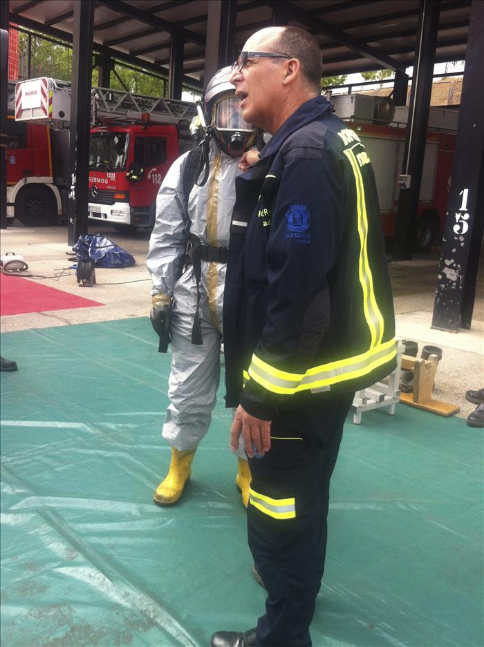 Ambos cuerpos hacen prácticas conjuntas mensualmente y además los bomberos «se entrenan y forman mucho para tener ajustada la intervención al máximo y para que sea lo más cómoda posible, dentro de lo cómodo que se puede estar dentro de un traje así», que tienen equipos de respiración autónomos, al menos tres guantes de protección e incluso ordenadores en su interior.