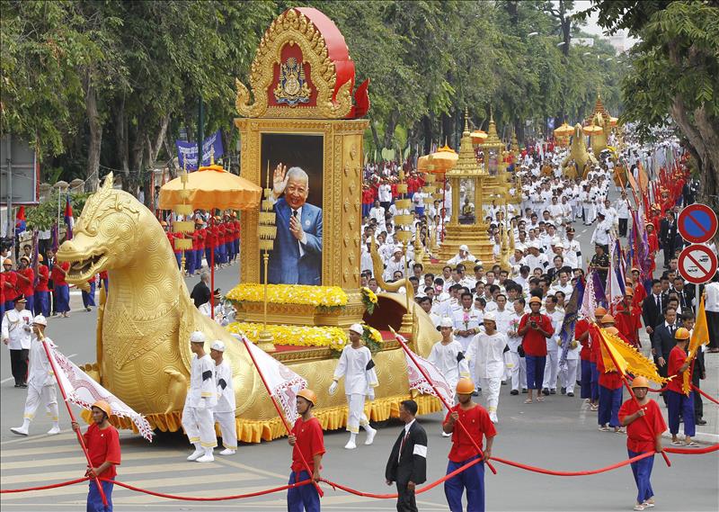 Miles de camboyanos escoltan las cenizas del rey Sihanuk a su lugar de reposo