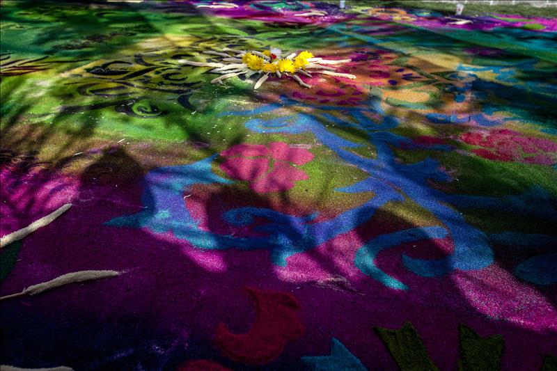 La alfombra de colores, que será utilizada para un cortejo procesional que atravesará el centro de la capital guatemalteca, tendrá una longitud de 2.137,8 metros, de acuerdo a la Municipalidad de Guatemala.