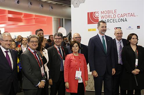 Nadal ha acompañado a S.M. el Rey Felipe VI y a la vicepresidenta del Gobierno, Soraya Sáenz de Santamaría, en el recorrido inaugural del Mobile World Congress en el que han visitado, entre otros, los estands de las administraciones implicadas en la organización de esta feria.