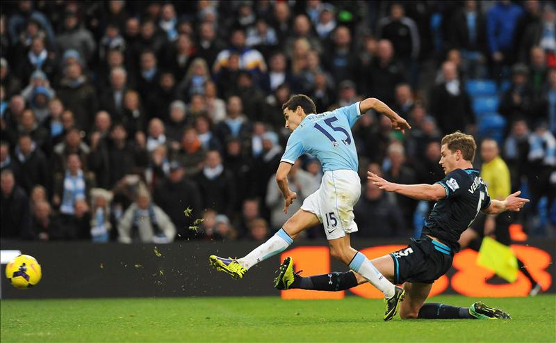 Roberto Soldado, que fue titular en el Tottenham, apenas tuvo ocasiones de inquietar al meta del City.
