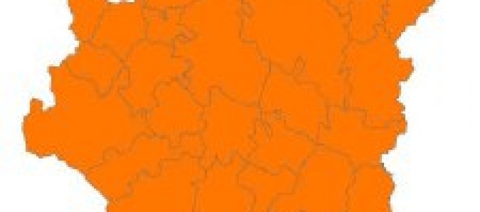 Naranja: caracterizado por condiciones meteorológicas y de contenido humedad del combustible con alta probabilidad de ignición. La propagación de los incendios forestales esperable es de alta velocidad e intensidad, pudiendo estar fuera de capacidad de extinción en amplias zonas incluso con media alineación de factores de propagación, siendo probables Grandes Incendios Forestales.