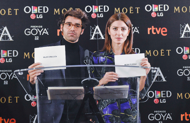 La Academia ha anunciado esta mañana los nominados a la 32 edición de los Premios Goya, galardones que se entregarán el próximo sábado 3 de febrero. En un acto que ha contado con la presencia de Yvonne Blake, presidenta de la institución, y bajo la supervisión de la notario Eva Sanz, los intérpretes Bárbara Lennie (Goya a la Mejor Actriz Protagonista por Magical Girl) y David Verdaguer (nominado al Goya al Mejor Actor Revelación por 10.000 kilómetros) han sido los encargados de desvelar los aspirantes a las 28 categorías.
