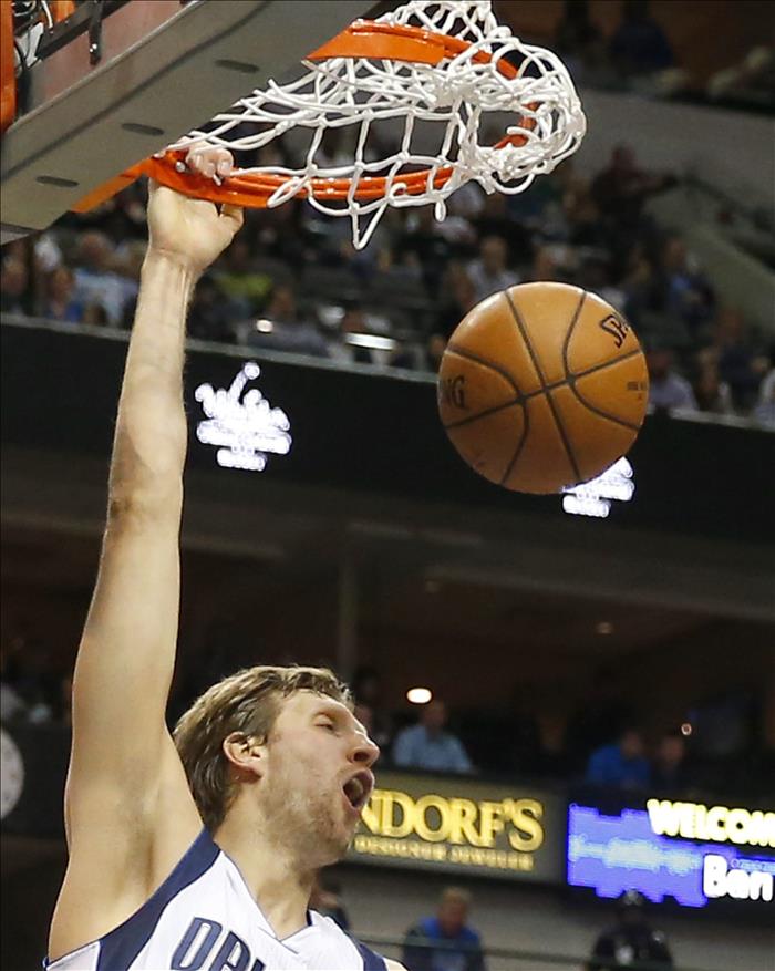 Nowitzki logró los dos puntos de su nueva marca histórica dentro de la NBA cuando faltaban 8:56 minutos del cuarto periodo y recibió un pase del escolta Monta Ellis.