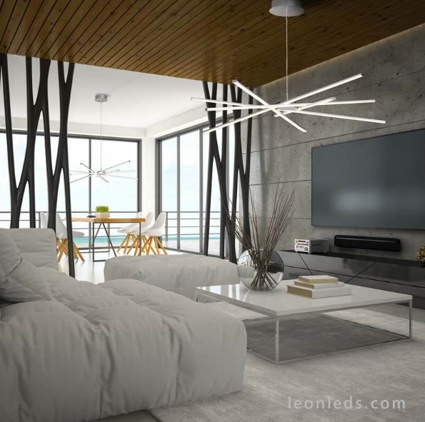 Las lámparas de techo LED son unas grandes aliadas para iluminar y separar espacios visualmente dentro de una misma sala.