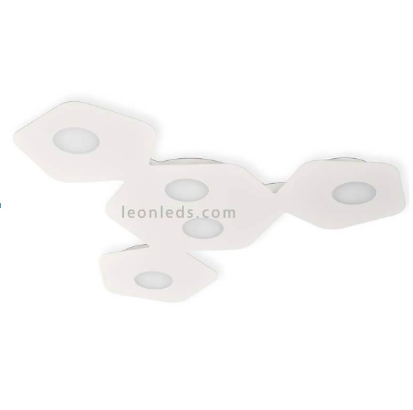 Se trata de una colección única de plafones hexagonales en color blanco en una pieza con una, dos o cuatro bombillas LED, pudiendo escoger el más apropiado según la cantidad de luz deseada.