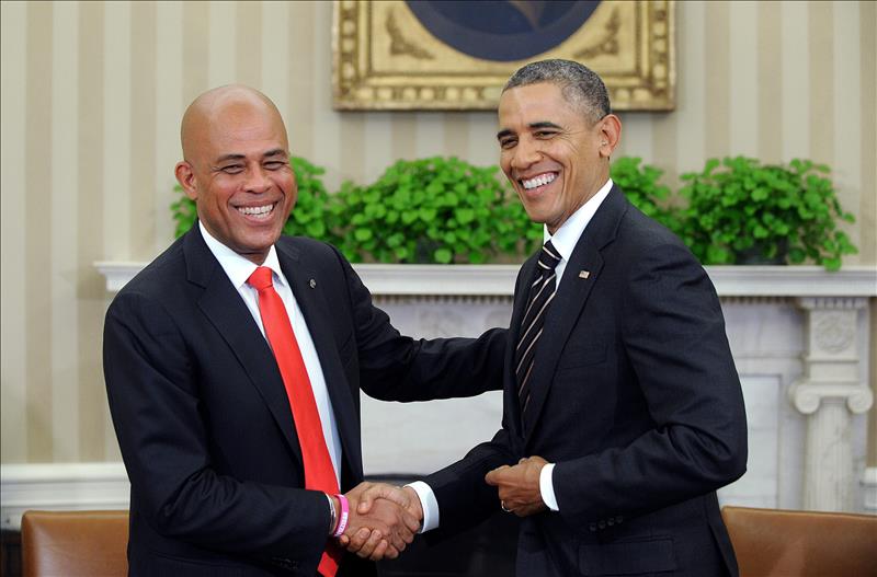 Al inicio de una reunión en la Casa Blanca con su homólogo haitiano, Michel Martelly, Obama se declaró «alentado» por la ley electoral aprobada en Haití a fines de 2013, interpretada como un avance para celebrar los comicios parciales reclamados durante meses por la oposición, la ONU, la Unión Europea (UE) y Estados Unidos.