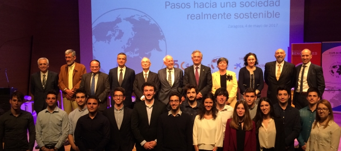 El acto ha contado además con la presencia del vicepresidente del capítulo Español del Club de Roma, José Manuel Morán, el miembro del comité ejecutivo del Club de Roma Internacional, Joan Rosas Xicota, el director del IUI Circe, Antonio Valero Capilla y el presidente del Grupo Aragonés del Club de Roma, José Ramón Lasuén, entre otros.