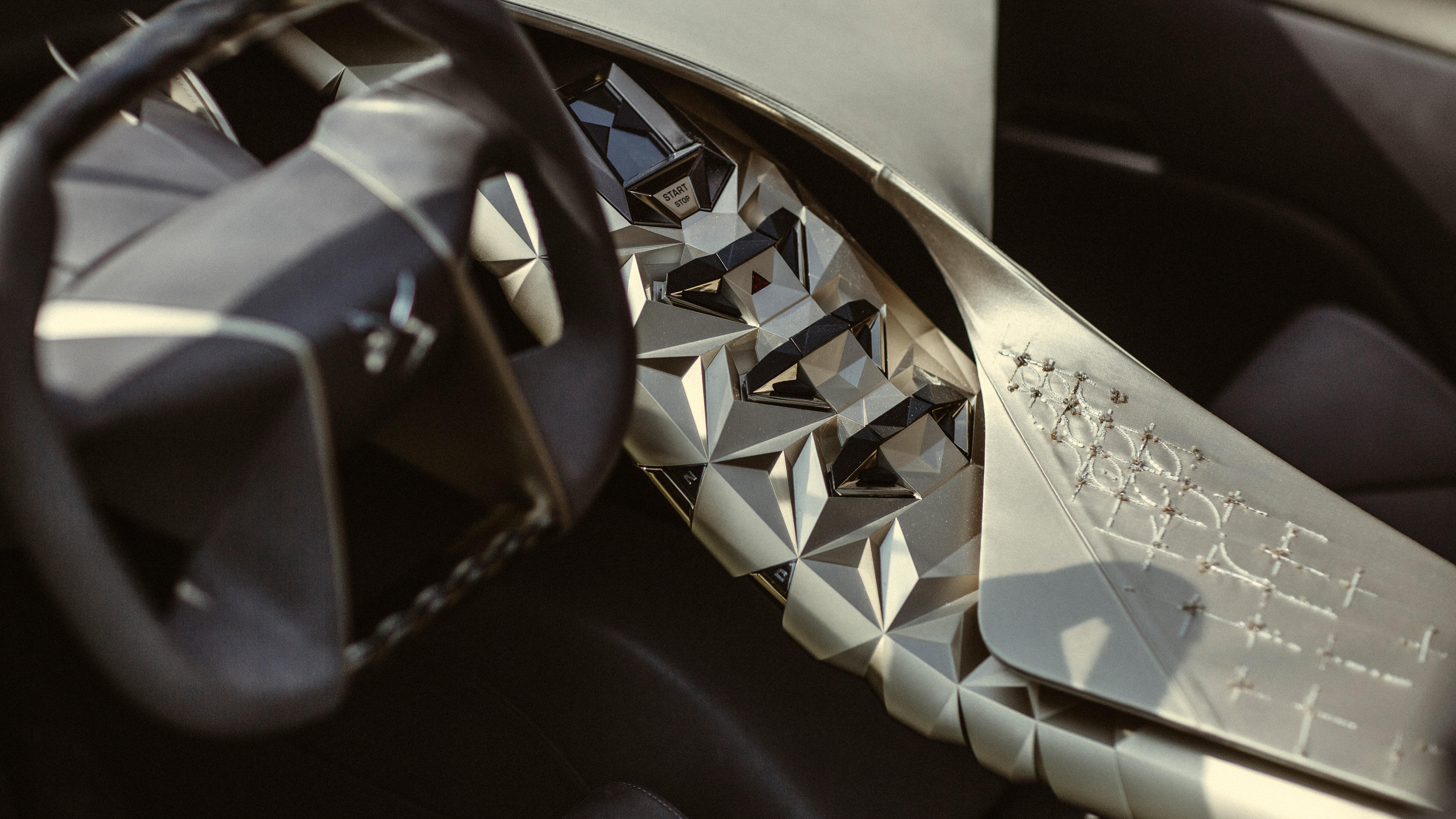 En el «showcar» hay oro blanco y hasta un poco de granito, explica el jefe de diseño, Thierry Metroz. En el tapizado, por ejemplo las puertas, hay incontables cristales de Swarovski. «Con ello queríamos capturar el lujo, la elegancia y la artesanía y dar a nuestro modelo un toque especial», argumenta Metroz la llamativa ornamentación.