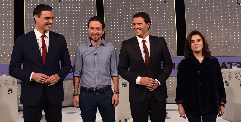 «La foto me recordaba al tratado trasatlántico de las Azores, esa foto en la que cuatro líderes, rendidos a los poderes económicos, que les marcan las reglas de juego en la televisión y que les dicen representen ustedes un papel, que parezca que lo van a hacer, pero no lo van a hacer», ha dicho el candidato asturiano.