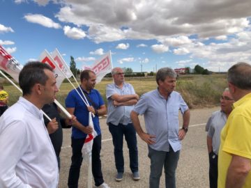 Ovidio Zapico, junto al coordinador de IU en Gijón, Faustino sabio, viajaron hoy a mota del marqués donde terminaba una de las etapas, en tierras castellanas, de la Marcha por el Aluminio que protagonizan trabajadores de la aluminera.
