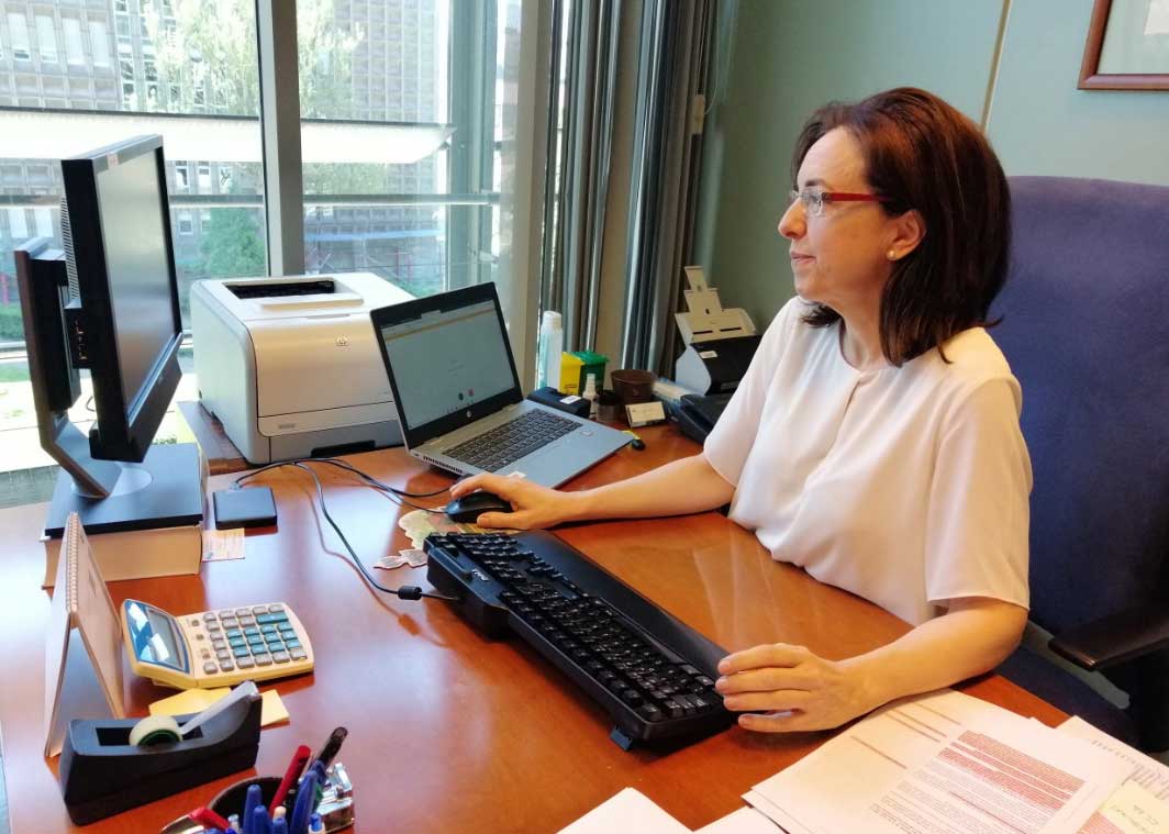 La directora general de Calidad Ambiental y Cambio Climático del Principado de Asturias, Paz Orviz, que se ha reunido por videoconferencia con el director general de Calidad y Evaluación Ambiental, Ismael Aznar, y la subdirectora general de Economía Circular, Margarita Ruiz, del Ministerio para la Transición Ecológica y el Reto Demográfico.