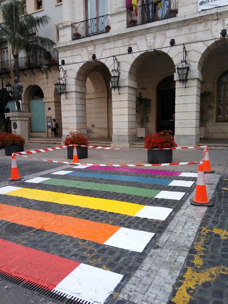 La Central Sindical Independiente y de Funcionarios (CSI-F) ha señalado al Ayuntamiento de Gandia (Valencia) el «riesgo» que conlleva para la circulación sustituir el color blanco de las marcas de pasos de peatones por franjas multicolores, que el consistorio ha pintado este martes en varias calles de la ciudad con motivo del Día Internacional del Orgullo LGTB.