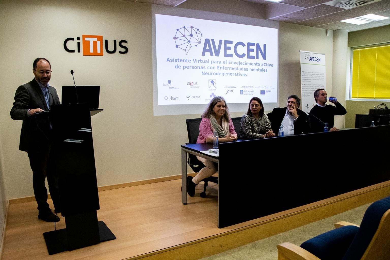 El proyecto AVECEN (Asistente Virtual para el Envejecimiento Activo de personas con Enfermedades Neurodegenerativas) se presentó el pasado 26 de noviembre en Santiago de Compostela por un consorcio de empresas y centros de investigación. El consorcio AVECEN está formado por las empresas Tecnologías Plexus, Arcade Consultores, Imagames Gamification Services e Insati Innovation, con la colaboración del Citius (Centro Singular de Investigación en Tecnologías Inteligentes) y el INIBIC (Instituto de Investigación Biomédica de A Coruña).