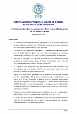 • La Asociación Española de Pediatría (AEP), a través de su Comité Asesor de Vacunas y de su Comité de Bioética, desea manifestar su posicionamiento sobre la obligatoriedad o no de las vacunas en España.