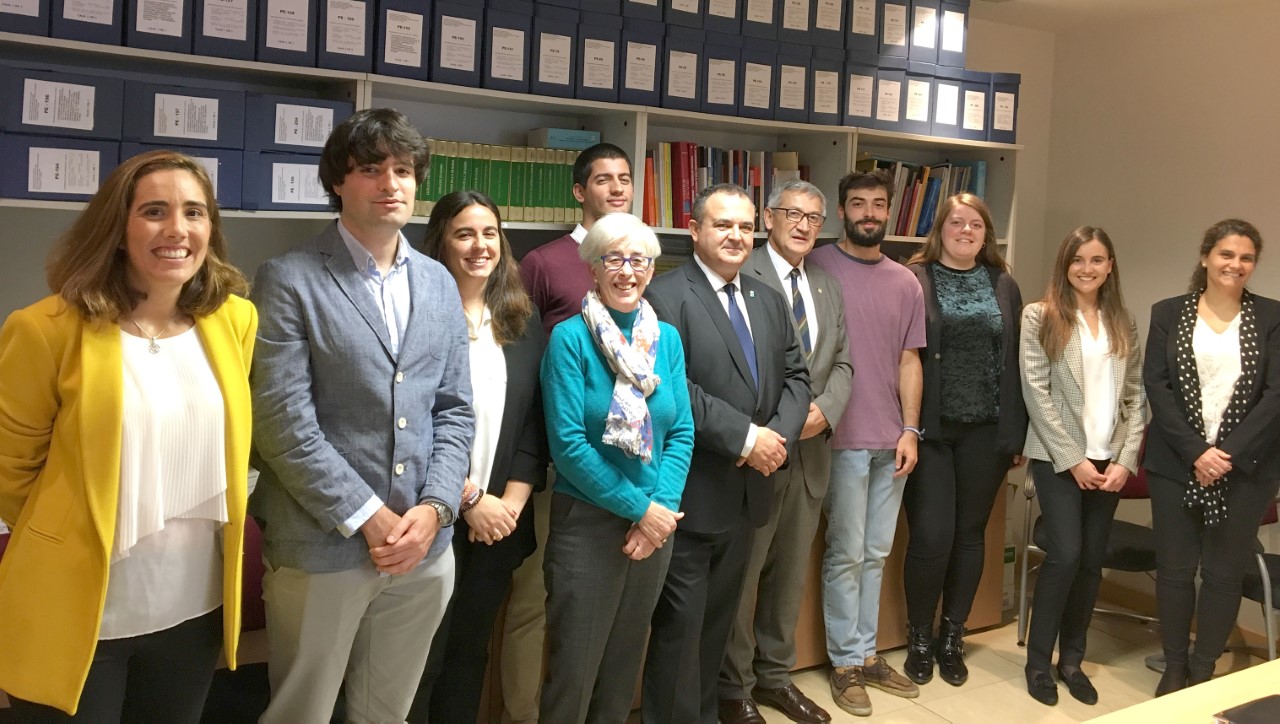 El titular de Empleo ha recibido a los jóvenes, en un encuentro al que también han asistido el rector de la Universidad de Oviedo, Santiago García, y las directoras de Asturex y de la FUO, Teresa Vigón y Cecilia Bethencourt, respectivamente.