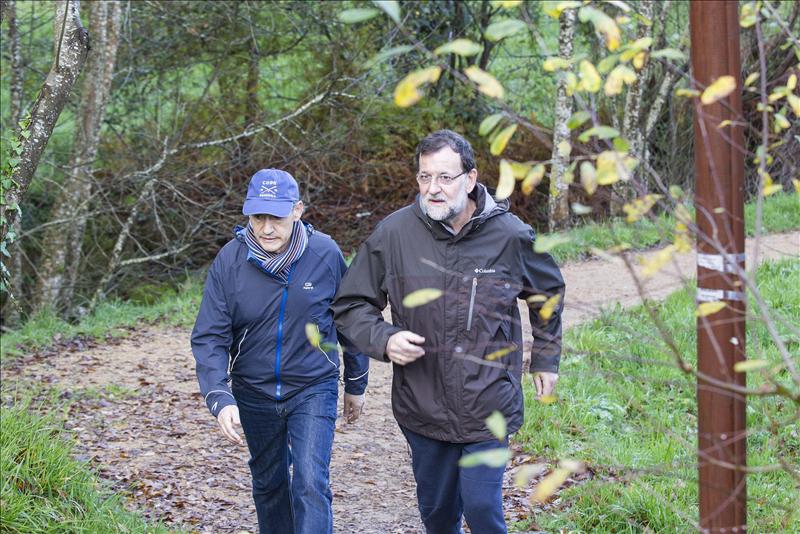 Al igual que en el día de ayer, el jefe del Ejecutivo ha dado un paseo esta mañana por la ruta de ‘Pedra e da Auga de Ribadumia’, acompañado por el presidente de la Autoridad Portuaria de Marín y marido de la ministra de Fomento, Ana Pastor, José Benito Suárez Costa.