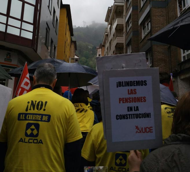 Recortes Cero y Unificación Comunista de España (UCE) han participado este 1º de mayo en la manifestación desarrollada en Mieres y han estado apoyando las reivindicaciones de los trabajadores de Alcoa