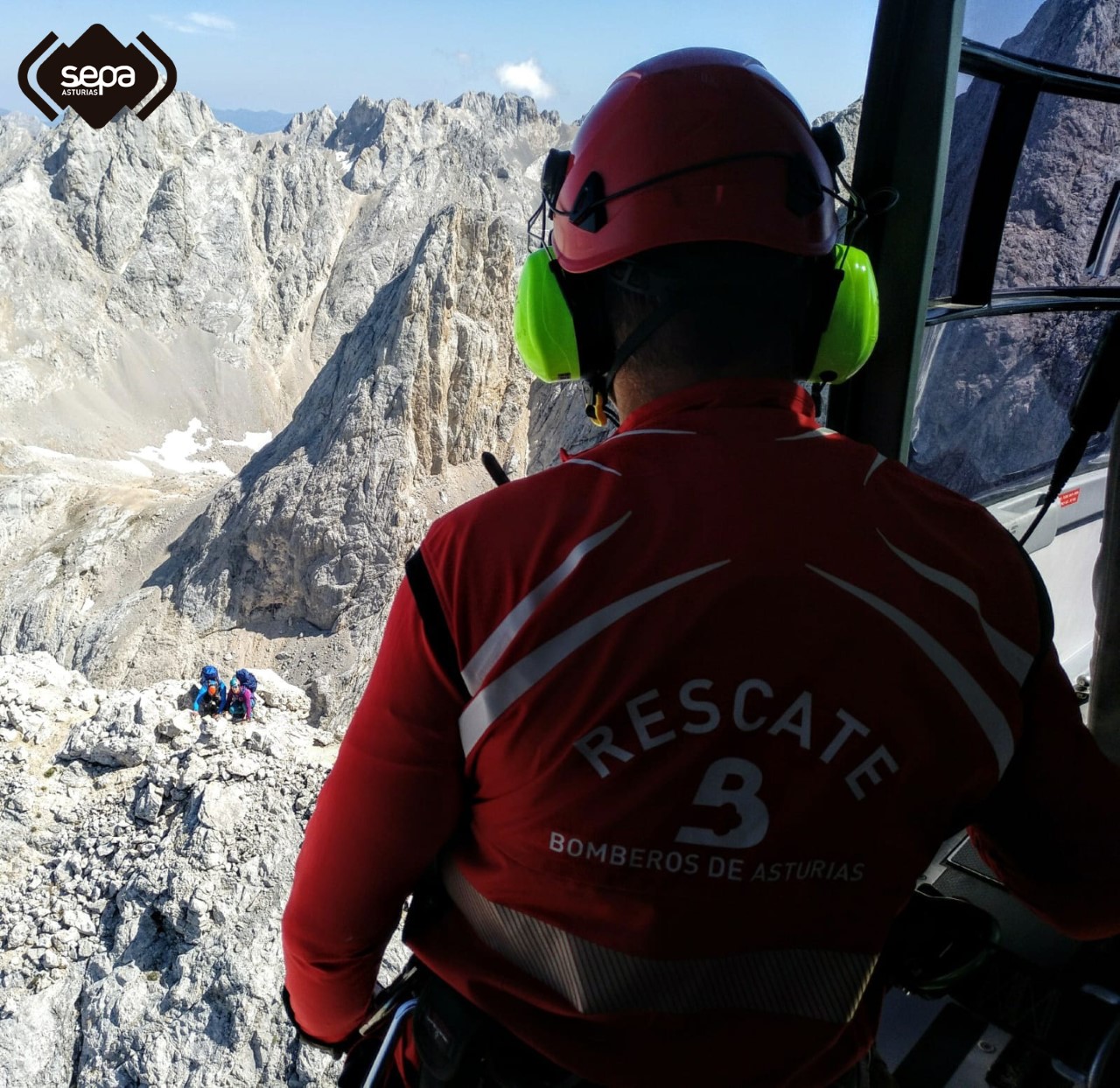 El Grupo de Rescate de Bomberos del Servicio de Emergencias del Principado de Asturias (SEPA), a bordo del helicóptero medicalizado, ha evacuado a una pareja de montañeros que se había quedado enriscada en el Pico Cabrones, en el macizo central de los Picos de Europa, en Cabrales. Ambos están bien y se les trasladó hasta el Refugio de Cabrones.