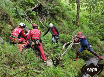 Efectivos del Grupo de Rescate de Bomberos del Servicio de Emergencias del Principado de Asturias (SEPA), a bordo del helicóptero medicalizado, ha evacuado a un varón que ha resultado lesionado mientras practicaba barranquismo en Carangas, en Ponga. El afectado, que presentaba una posible lesión de tibia y peroné, ha sido evacuado al Hospital Comarcal de Arriondas.