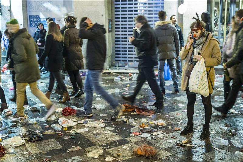 Retiran 24.000 kilos de residuos en Madrid tras las campanadas del Año Nuevo