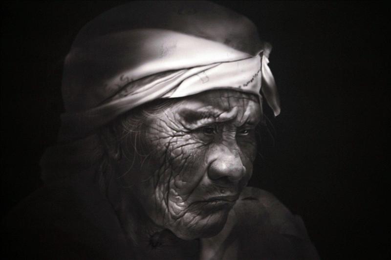 Otra de las imágenes en blanco y negro que integran la exposición «El Grito Enxet», que se exhibe en el Centro Cultural Español Juan de Salazar de Asunción, presenta al anciano Tomás Galeano, difunto líder de los Yakye Axa, que llevó su testimonio, junto a la organización Tierraviva, hasta la CorteIDH.
