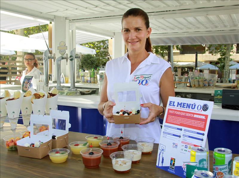 Tapas, ensaladas, cremas heladas, bocadillos y postres sanos conforman el menú de la famosa chef, con nombres relacionados con el baloncesto como contraataque, mate, tiro libre, triple y que han sido elaborados con ingredientes de primera calidad, han informado los organizadores.