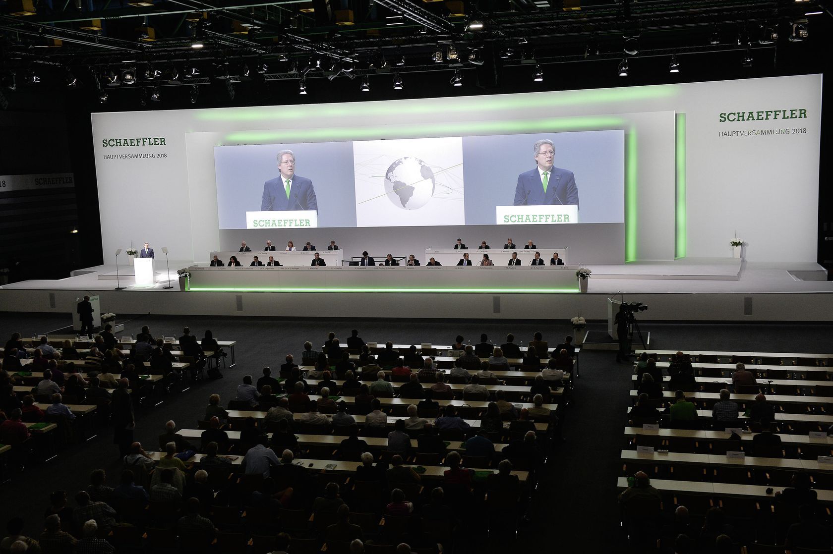 La Junta general anual de Schaeffler AG se ha celebrado por tercera vez en el centro de convenciones Frankenhalle de Núremberg, y por tercera vez desde la salida a bolsa, los accionistas han tenido la oportunidad de votar un aumento de los dividendos. El dividendo ordinario por acción ordinaria sin derecho a voto ha aumentado de 50 céntimos en el ejercicio anterior a 55 céntimos, es decir, ha experimentado un aumento del 10 por ciento. Esto representa un índice de pago de dividendos de aproximadamente el 35 por ciento de los ingresos netos consolidados, que se sitúa justo en el medio del rango objetivo previsto del 30 al 40 por ciento.