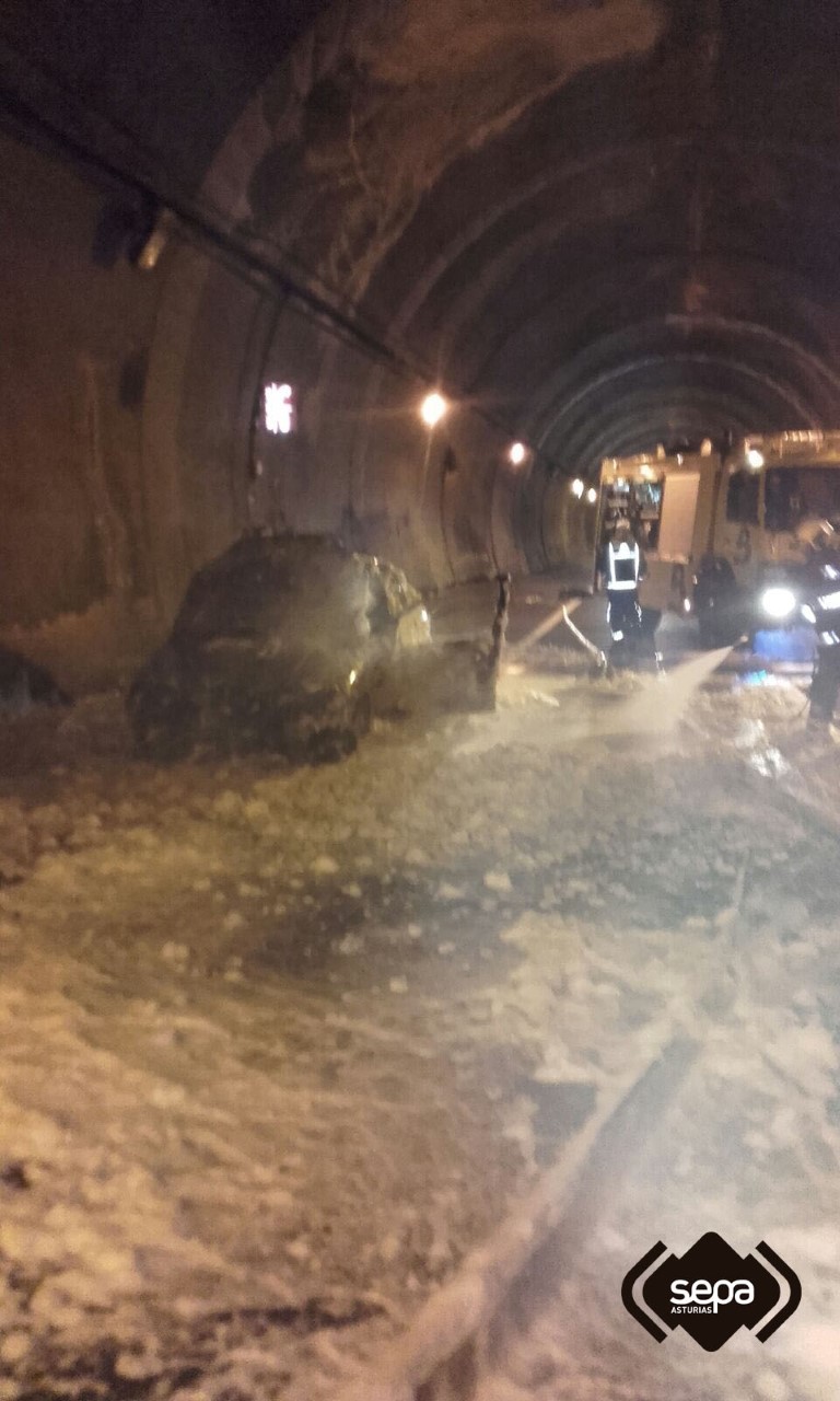 Efectivos de Bomberos del Servicio de Emergencias del Principado de Asturias (SEPA), con base en el parque de Mieres, han sofocado el incendio de un turismo en el interior del túnel de Pando, en la AP-66, en el punto kilométrico 79,200, sentido León, en el concejo de Lena.