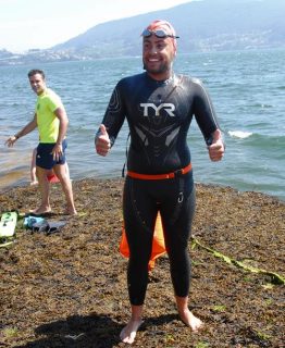 Sergio Torres, el ganador de la VI Batalla de Rande, reconoció sentirse “sorprendido” por su victoria. Añadió que “venía con la intención de estar entre los primeros, pero no contaba con ganar. Aquí había mucho nivel”. Reiteró que “la primera parte de la prueba fue normal. Al ir en grupos se hizo más fácil. Pero después de pasar el puente ví que podía optar a la victoria. Logré una ventaja que después fue suficiente. La verdad es que pensaba que alguien me alcanzaría”. Sergio Torres, que logró su tercera victoria en una prueba de estas características, señaló que “las condiciones fueron muy buenas. El año pasado ya estuve aquí y me quedé con mal sabor de boca. Tuvieron que suspender la prueba por las dificultades. Por eso, en esta ocasión tenía una especial ilusión”. El catalán reiteró que “la Batalla de Rande es la prueba más importante de aguas abiertas que se disputa en España. Está muy bien organizada y además el escenario es increíble”.