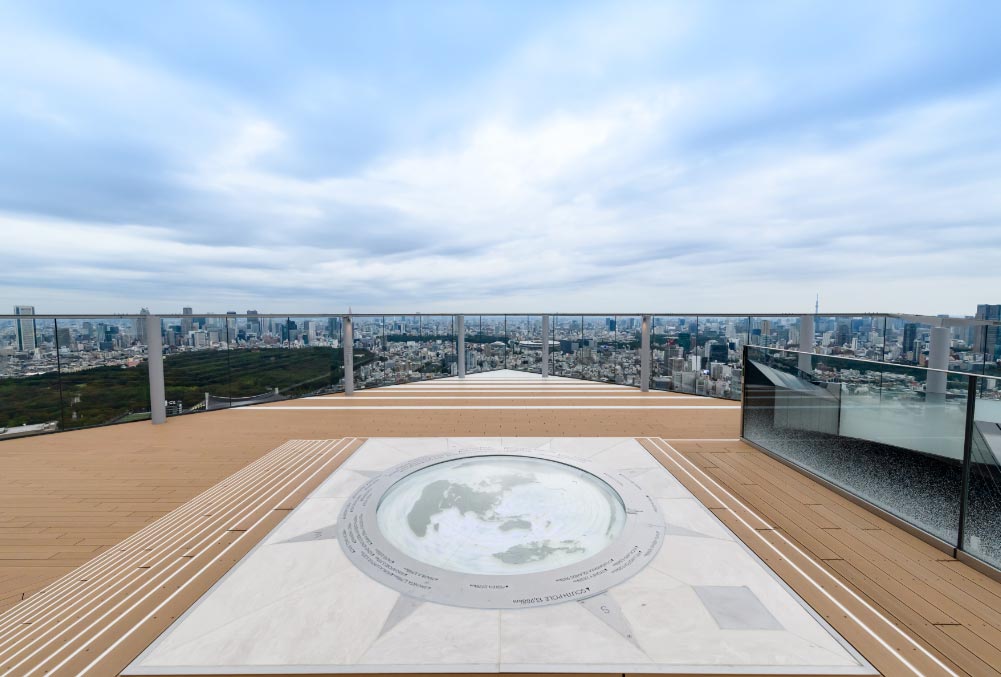 El edificio Shibuya Scramble Square se encuentra en el barrio del mismo nombre, famoso por su bulliciosa intersección. Desde el mirador, con una panorámica de 360 grados, los vistantes pueden ver, entre otras cosas, la torre de radiodifusión y el mirador Tokyo Skytree, el distrito de entretenimiento Roppongi, la Torre de Tokio y el centro comercial y administrativo de Shinjuku.