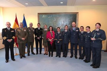 El Ministerio de Defensa ha entregado, ex aequo, el Premio ‘Soldado Idoia Rodríguez, Mujer en las Fuerzas Armadas’ a la teniente del Cuerpo de Intendencia del Ejército de Tierra Natalia Hernando Chueca; a la teniente de navío del Cuerpo General de la Armada Marina Goicoechea Margalef y al componente femenino de la Patrulla Acrobática de Paracaidismo del Ejército del Aire (PAPEA), formada por la cabo primero Diana Vetia Ruiz y la cabo primero María Soledad Agea Cuadrado y las cabos Elizabeth Hernández Moreno, Rebeca Nobile Martínez y Teresa Pardo Moñino.