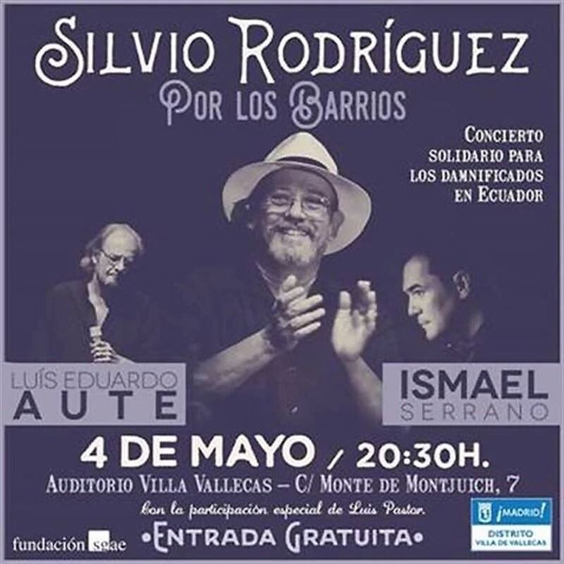 El cantautor y poeta cubano Silvio Rodríguez actuará con entrada gratis, al aire libre, en el Auditorio de Villa de Vallecas (calle de Montjuic, 7) este miércoles a las 20.30 horas, concierto que compartirá con Luis Eduardo Aute e Ismael Serrano y la participación especial de Luis Pastor.