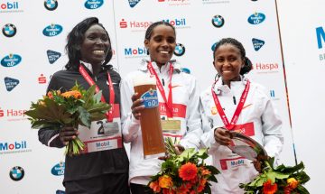 Entre las mujeres, se impuso Dibabe Kuma, de Etiopía, con un tiempo de 2:24:42 horas y a 1:20 minutos de la keniana Magdalyne Masai. En tercer lugar pasó la meta Failuna Matanga, de Tanzania.