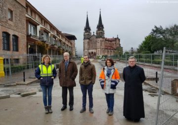 El director general de Ordenación del Territorio y Urbanismo, Alfonso Toribio, que ha visitado las obras de acondicionamiento de la explanada de la basílica de Covadonga, iniciadas a principios de noviembre por la Consejería de Infraestructuras, Medio Ambiente y Cambio Climático.