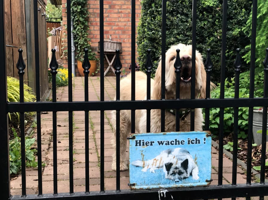 Por otro lado, que el perro ladre en el cerco de la casa puede significar que, tras haber sido dejado solo, está llamando a su dueño. «Este tipo de ladrido podría describirse como ladrido de separación. Los lobos que ‘llaman’ a sus pares pratican una aullido de separación«, apunta Feddersen-Petersen.