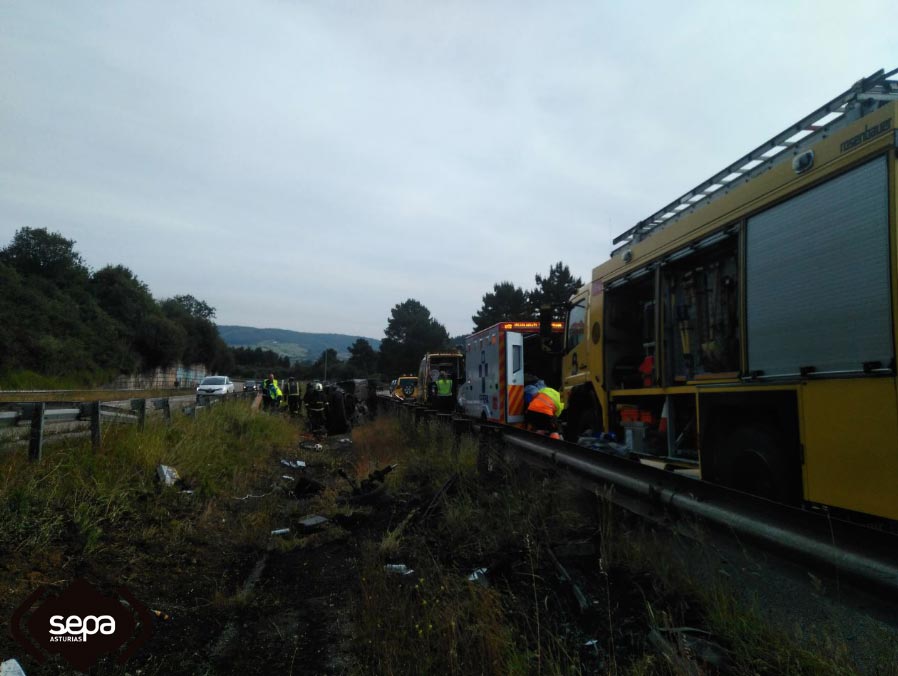 Un varón ha fallecido y otro ha resultado herido grave tras salirse de la vía y volcar, por causas que se desconocen, el vehículo en el que circulaban por la A-66, a la altura del punto kilométrico 14, sentido Gijón, en este mismo término municipal. Según los datos facilitados por el Servicio de Atención Médica Urgente (SAMU) el herido grave, que presenta un traumatismo craneoencefálico, ha sido evacuado por la UVI Móvil de Oviedo al Hospital Universitario Central de Asturias (HUCA).