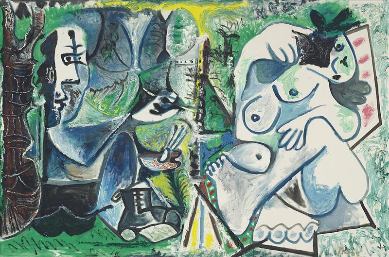 La pintura, perteneciente a la última etapa de Picasso, es una metáfora de su propia relación con el arte, en la que aparece él mismo pintando a una de sus habituales modelos femeninas en un entorno bucólico, fuera del estudio, al estilo de sus muchas recreaciones de «Le déjeuner sur l’herbe» de Manet.