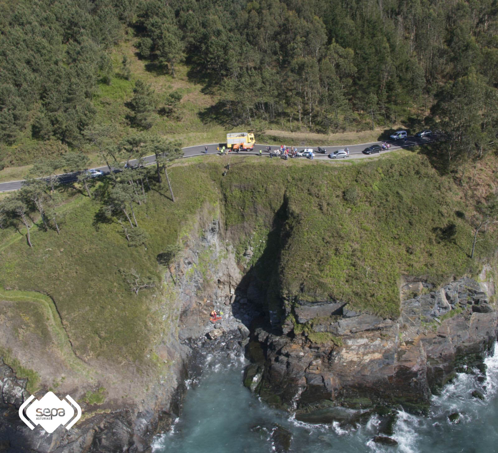 El Centro de Coordinación de Emergencias del 112 Asturias recibió el aviso a las 16.14 horas. En la llamada, realizada por un particular, indicaba que estaba viendo un coche volcado, con las ruedas hacia arriba, en la zona del acantilado. No veía a nadie salir del coche. El agua no llegaba al vehículo, pero no había acceso rodado.