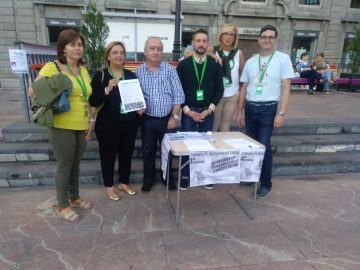 Representantes de PSOE, Podemos e Izquierda Unida acompañan en Asturias a la Mesa Estatal por el Blindaje de las Pensiones en la recogida de firmas.