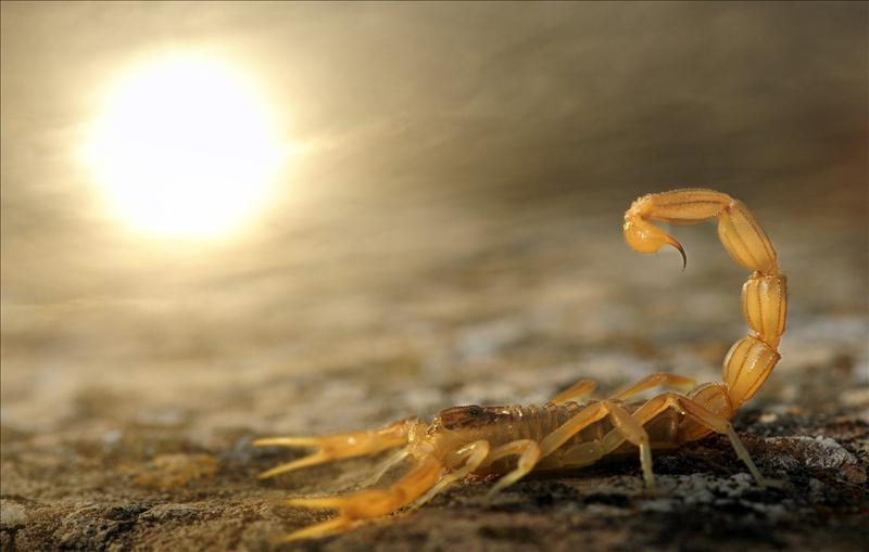 Pérez Naval, que en el momento de tomar la instantánea tenía tan solo ocho años, capturó la imagen de un escorpión común amarillo aprovechando la luz de la tarde, cerca de Torralba de los Sisones (Teruel).