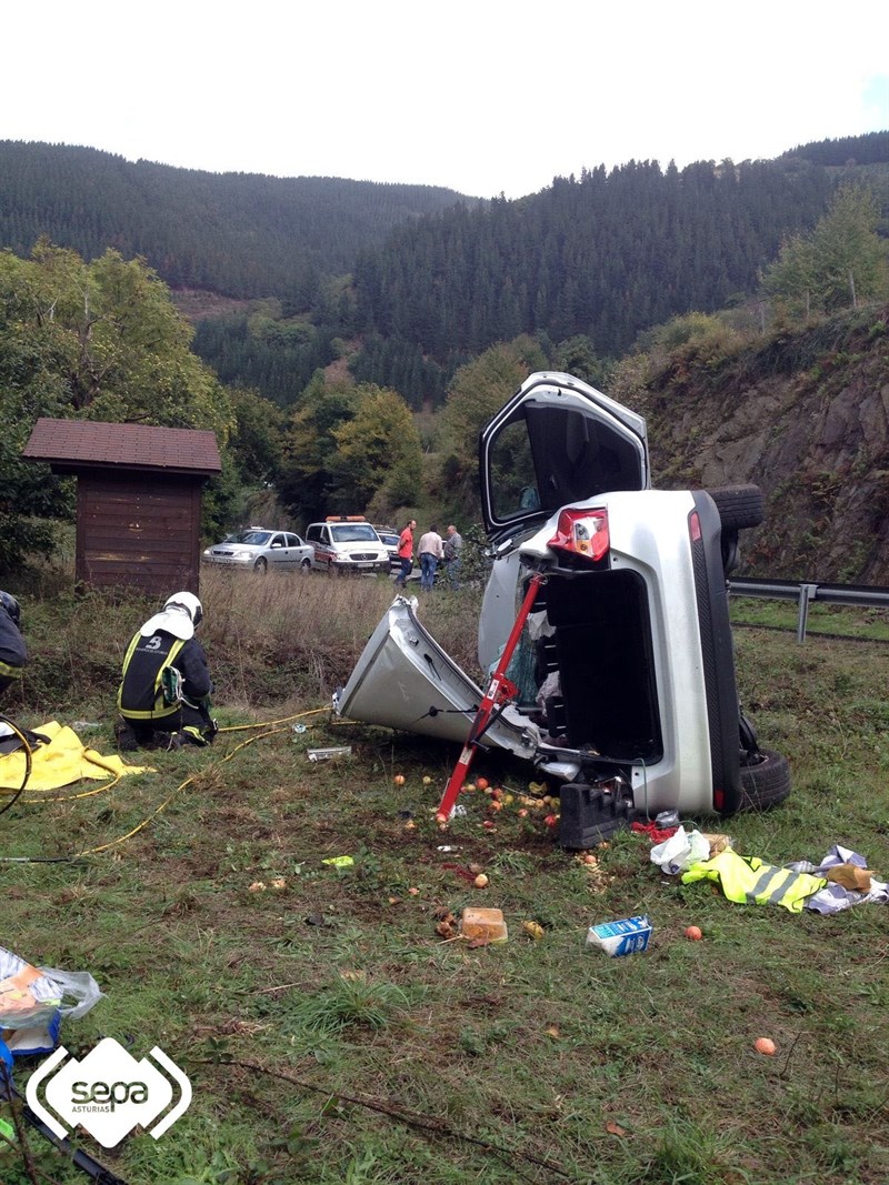 Una mujer ha resultado herida tras salirse de la vía y volcar con su turismo, por causas que se desconocen, cuando circulaba por la AS-15, en San Pedro de Corias, en Cangas del Narcea, ha informado el Servicio de Emergencias del Principado de Asturias (SEPA) que recibió la llamada de aviso a las 15.16 horas de esta tarde.