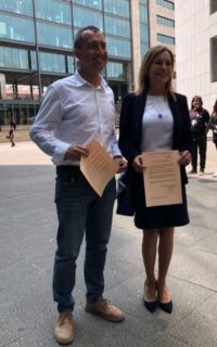 Ángela Vallina y Ovidio Zapico recogieron esta mañana sus actas de diputado en un acto que se desarrolló en los juzgados de Oviedo.