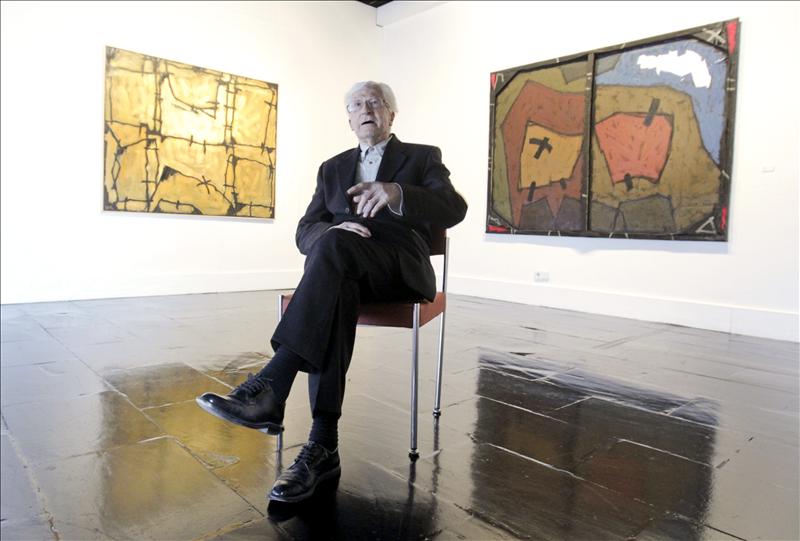 «Una vez mi portero vio a un Guardia Civil en uno de mis cuadros, me he devanado los sesos intentando encontrarlo, pero nada», ha explicado este octogenario que comenzó a pintar arte abstracto cuando encontró un catálogo de Picasso.
